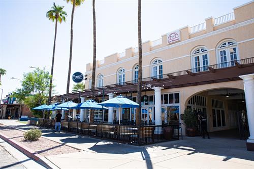 We are located on the corner of the San Marcos Hotel in downtown Chandler. Our major cross streets are Arizona Avenue and Commonwealth Avenue.